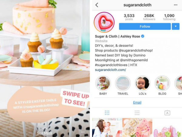 If your business page has more than 10,000 followers, you can embed a link in your Instagram Story. With a simple swipe, followers are whisked directly to your website to read the blog. In your story, entice viewers by announcing the blog’s topic and including a CTA like “Swipe up for the full post!” On the Social Media Examiner podcast, Sue B. Zimmerman recommends creating a “Blog” highlights folder where all of your blog-related stories can live forever. (Check out our previous post for more info on Instagram Highlights and why they’re important.)