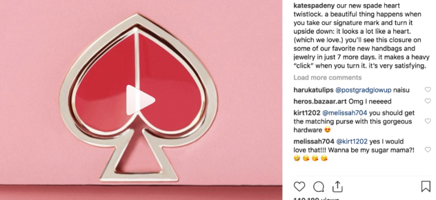 Lo and behold, not long after, Kate Spade posted a few Instagram images featuring the use of the spade, such as the following: